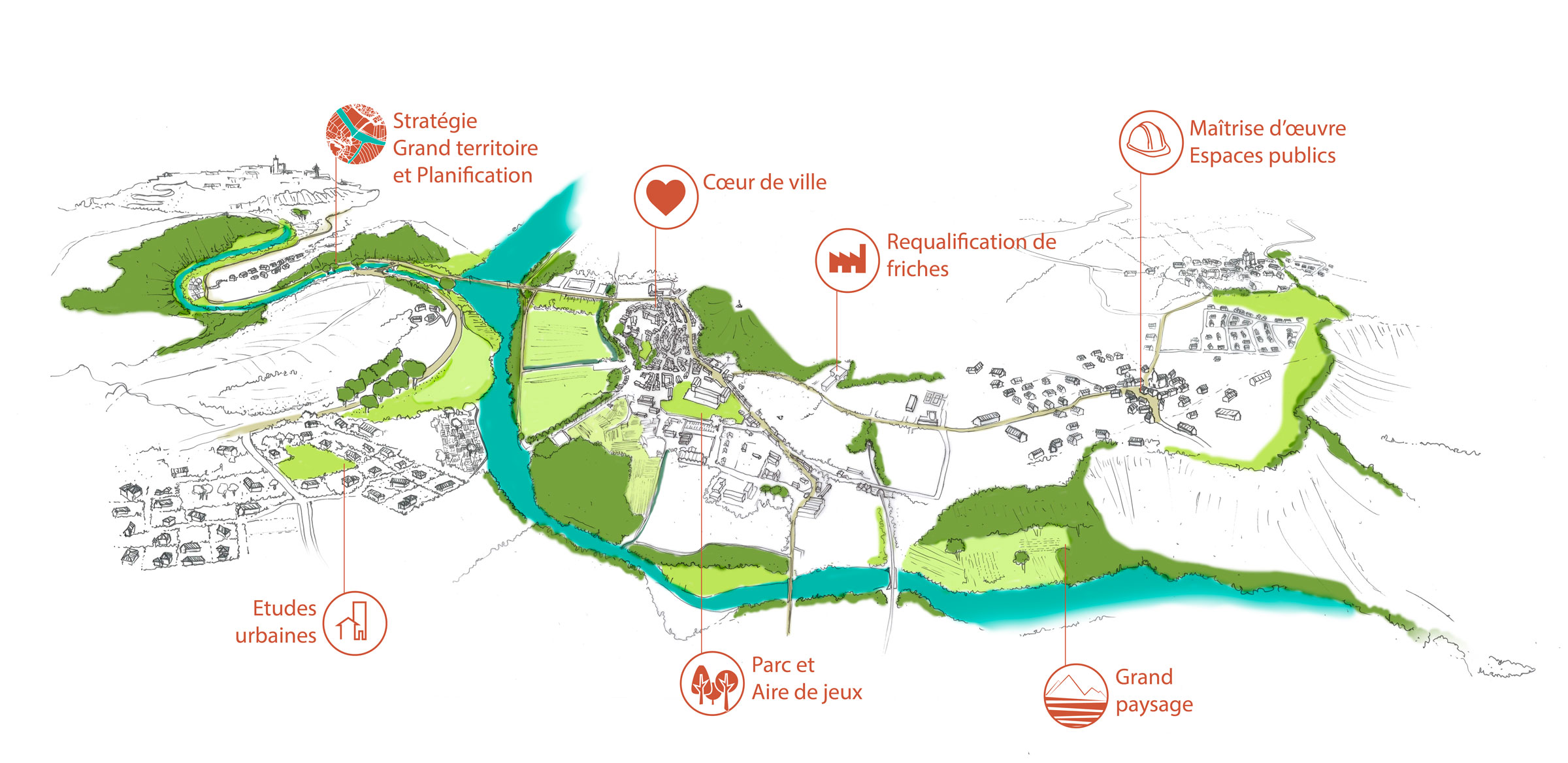 Agence coopérative réunissant architectes, urbanistes et paysagistes, ex&terra accompagne les collectivités dans l’aménagement de leur territoire via des projets durables, sobres et réjouissants.
